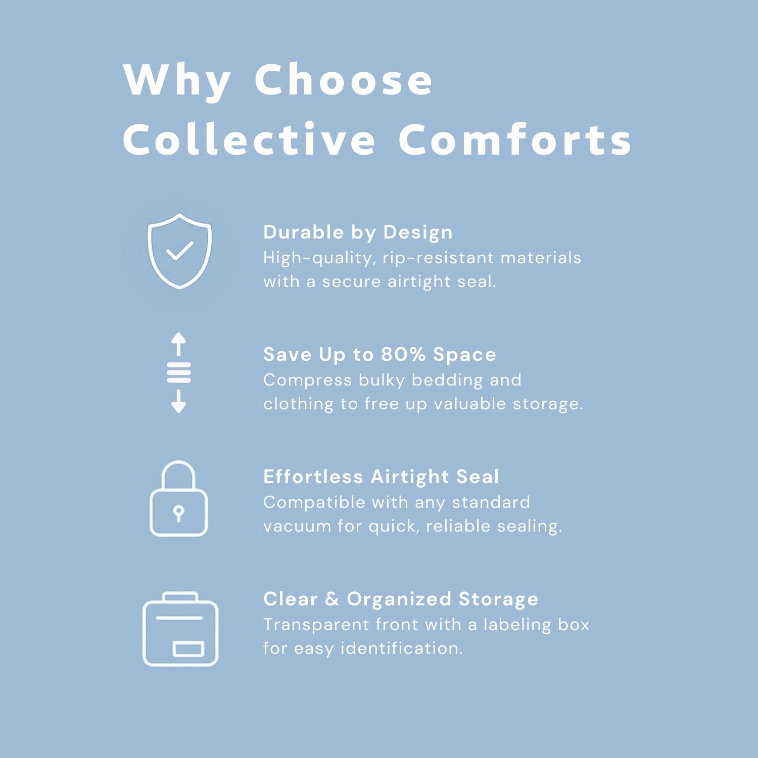 Premium vacuum storage bags designed to protect your bedding and save up to 80% space.